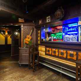 Интерьер кафе-бара «Мустанг» оформлен в американском стиле. В отделке использовано много дерева, сочетание бежево-коричневой цветовой гаммы и деталей в духе Дикого Запада, что создает здесь атмосферу настоящего вестерна. В кафе есть три зала: основной с барной стойкой, VIP и банкетный. Летняя терраса представлена 6 отдельно стоящими беседками. А каждую пятницу и субботу в «Мустанге» проходят вечера живой музыки.