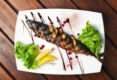 250/20/10 г • нежное филе сёмги в сливочном соусе с капустой брокколи и шампиньонами