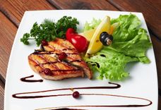 180 г • куриное филе, черри, чеснок, соус BBQ