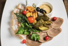 270/5 г • капуста квашеная, морковь по-корейски, огурчики маринованные, чеснок маринованный, опята маринованные, лук маринованный, зелень