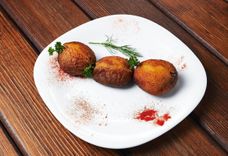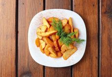 200/20/5 г • филе сельди, картофель по-деревенски, лук маринованный, зелень