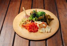 270/5 г • капуста квашеная, морковь по-корейски, огурчики маринованные, чеснок маринованный, опята маринованные, лук маринованный, зелень